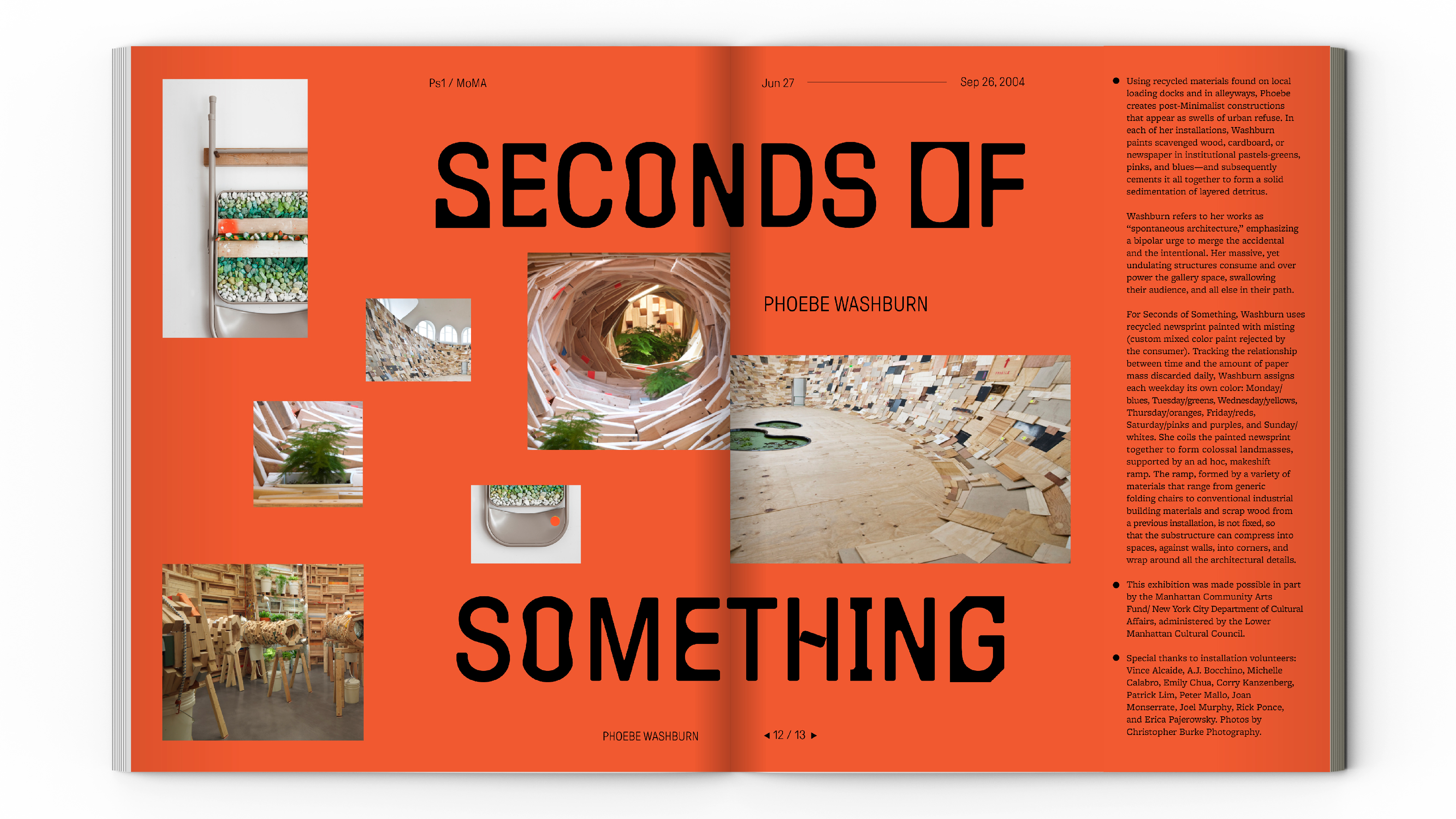 Phoebe Washburn’s Art—‘Seconds of Something’ uses recycled materials found on local loading docks and in alleyways, to create post-Minimalist constructions that appear as swells of urban refuse. In each of her installations, Washburn paints scavenged wood, cardboard, or newspaper in institutional pastels and subsequently cements it all together to form a sedimentation of layered detritus.